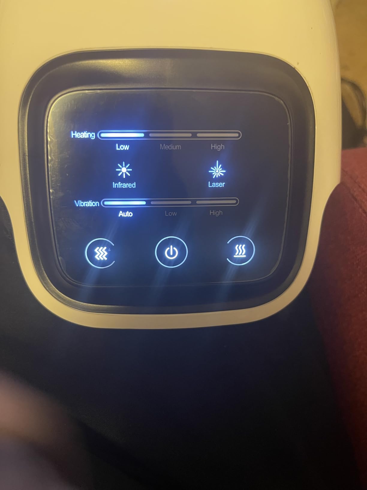 Excellent knee massager, it heats up quickly and the vibration is very soothing, perfect for my post-walk recovery. The only downside is that the straps took a minute to adjust perfectly, but once set, it’s incredibly functional and effective.